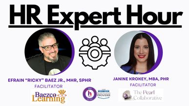 The Pearl Collaborative, along with Baezco Learning, is hosting a live Expert Hour webinar where you can grill our HR experts Efrain (Ricky) Baez Jr., MHR, SPHR, and Janine Hampu Krokey with all your burning HR questions. Don't miss this chance to pick their brains, network with fellow HR rock stars, and stay on top of the latest HR trends.